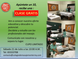 Si siempre has sentido interés por el masaje, pero no te has dado la oportunidad de conocerlo, te invitamos a tomar nuestra clase gratuita.
